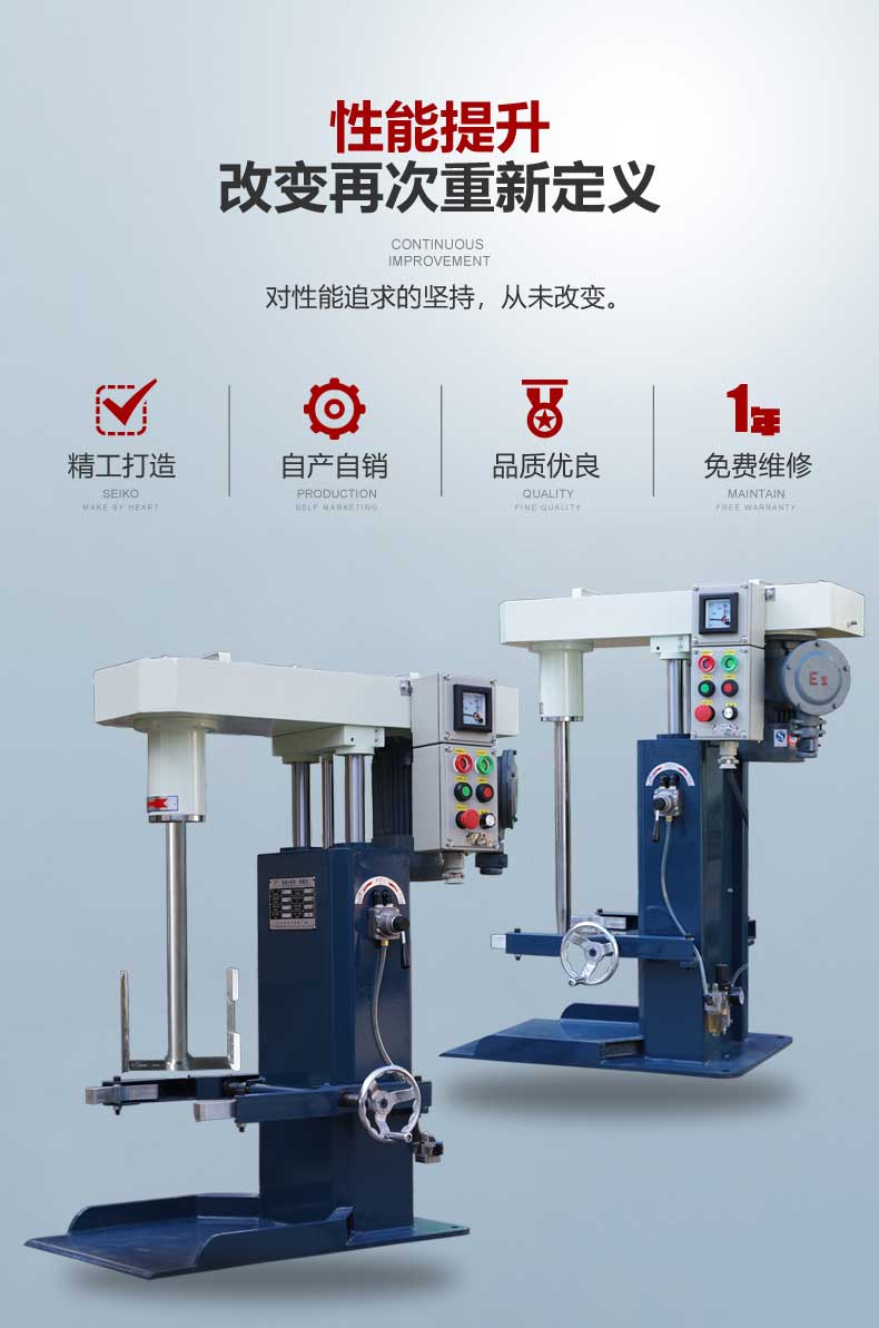 8、 可選(xuan)配各種(zhǒng)分散、攪(jiao)拌器,适(shì)應各種(zhong)生産工(gong)藝要求(qiú);