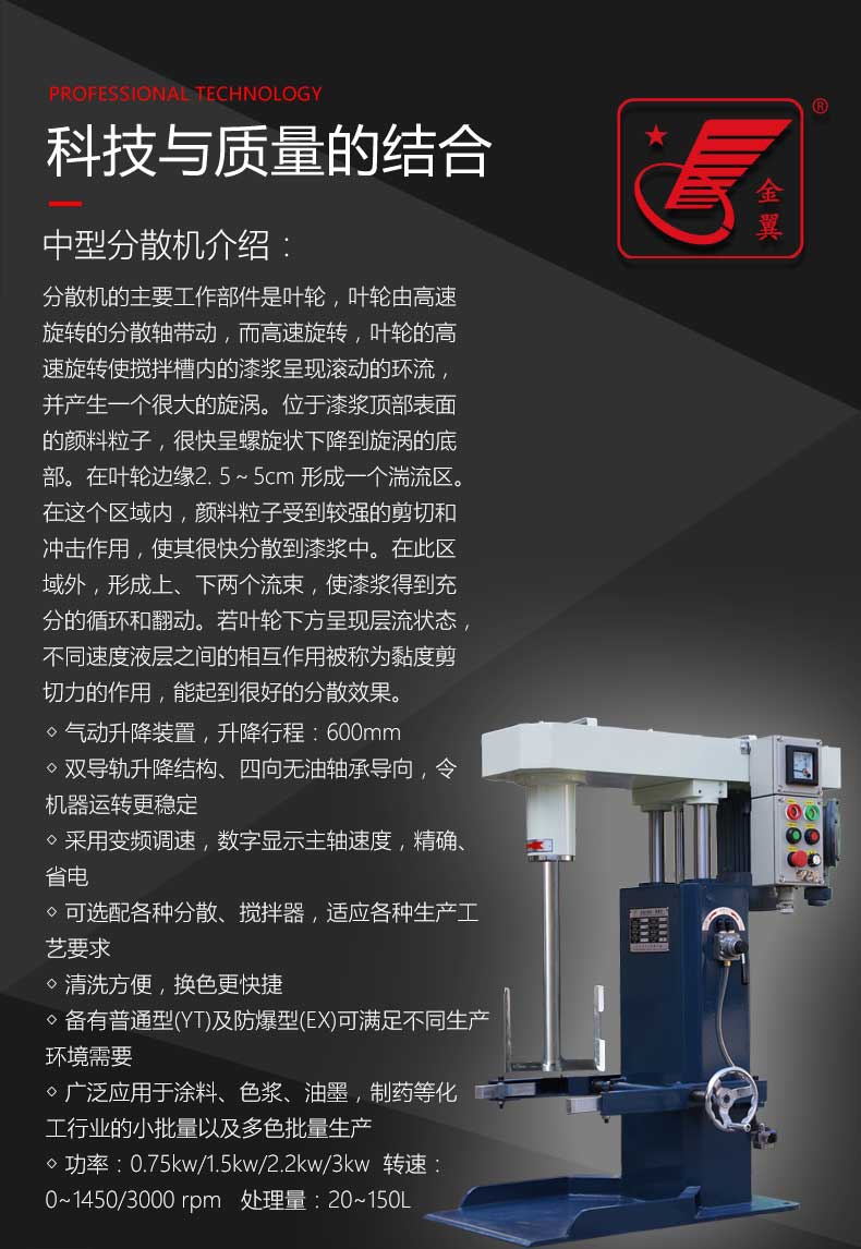 | 型号(hao)(Model) | 功率(kw) | 轉(zhuan)速(rpm) | 分散(san)盤直徑(jing) | 升降行(hang)程(mm) | 處理(li)量(L) | 重量(liàng)(KG) |